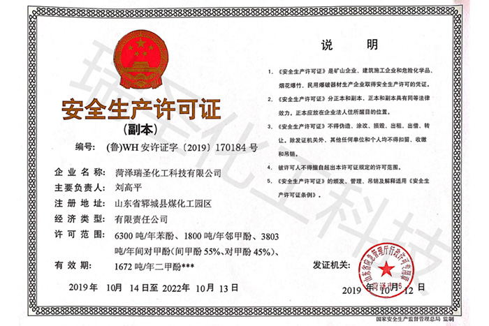 菏澤瑞圣化工科技有限公司是國(guó)內(nèi)酚類(lèi)產(chǎn)品的生產(chǎn)企業(yè)。公司現(xiàn)有年加工粗酚20000萬(wàn)噸的生產(chǎn)裝置及能力,可生產(chǎn)苯酚、鄰甲酚、間對(duì)甲酚、二甲酚等產(chǎn)品。產(chǎn)品廣泛應(yīng)用于合成樹(shù)脂、香料、染料、絕緣材料、阻燃劑、農(nóng)藥、醫(yī)藥、中間體等精細(xì)化工領(lǐng)域。本公司以誠(chéng)為本,信譽(yù)保證,靠過(guò)硬的產(chǎn)品質(zhì)量和完善的服務(wù)贏(yíng)得了國(guó)內(nèi)外廣大用戶(hù)的贊譽(yù)。產(chǎn)品暢銷(xiāo)國(guó)內(nèi)二十多個(gè)省市地區(qū),并地打入了國(guó)際市場(chǎng),產(chǎn)品遠(yuǎn)銷(xiāo)意大利、巴西、印度、韓國(guó)、日本、臺(tái)灣等國(guó)家和地區(qū)。 公司坐落在菏澤市鄆城縣煤化工業(yè)園區(qū)。生產(chǎn)及檢測(cè)設(shè)備精湛,管理機(jī)制科學(xué),并擁有技術(shù)隊(duì)伍,產(chǎn)品質(zhì)量達(dá)到標(biāo)準(zhǔn)。 可靠的產(chǎn)品、可靠的質(zhì)量、可靠的信譽(yù)、完善的服務(wù)是我們的宗旨,我們將竭誠(chéng)與海內(nèi)外各界朋友精誠(chéng)合作,共圖發(fā)展,攜手共進(jìn),創(chuàng)造你我共同的未來(lái)。 企業(yè)的使命感與社會(huì)的責(zé)任感讓我們今天在此相逢 ,就讓我們攜起手來(lái),相互交流,為我國(guó)化工行業(yè)的發(fā)展,盡一份綿薄之力,為創(chuàng)建更美好的明天共同奮斗!